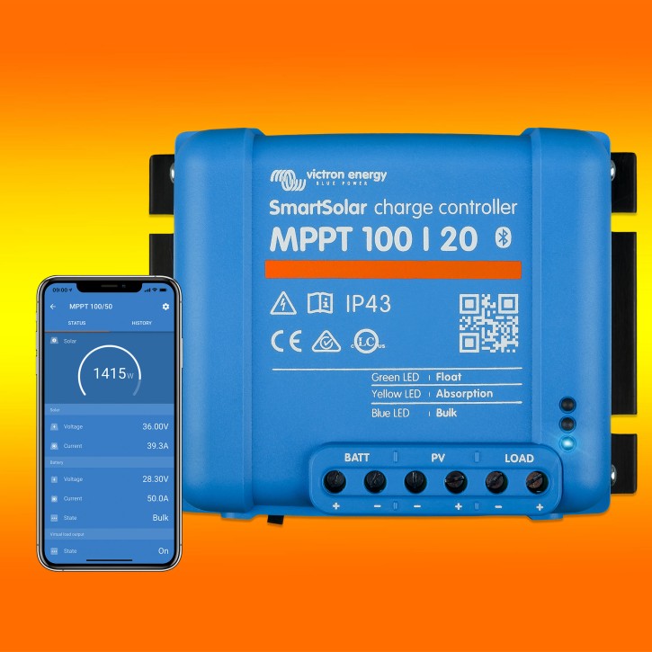 Der Laderegler Smartsolar 100/20 von Victron Energy ist eine MPPT Solar Laderegler